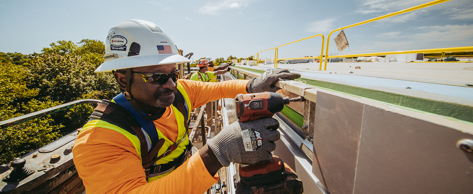 - 11,000 SF of 1/8-inch aluminum cornice, shop-fabricated by ASF and installed over hat channel sub-framing.